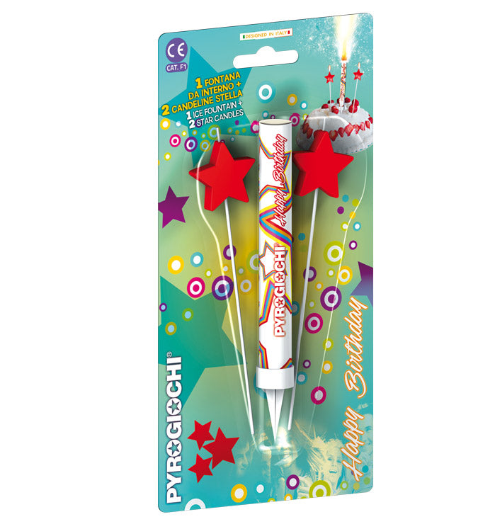 Set con scintilline e 2 candeline a forma di stella, perfetto per decorare torte e rendere speciali compleanni e feste con un tocco brillante.