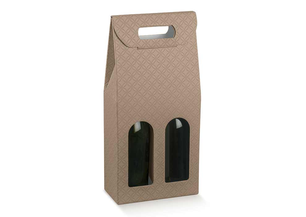 Scatola doppia 180x90x385mm in finitura opaca color cuoio, elegante e resistente, perfetta per confezioni regalo di 2 bottiglie di vino.
