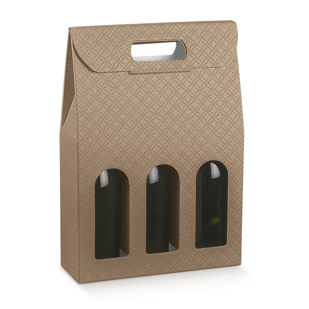 Scatola tripla finitura opaca color cuoio, dimensioni 270x90x385 mm, elegante e resistente, perfetta per confezioni regalo di 3 bottiglie.