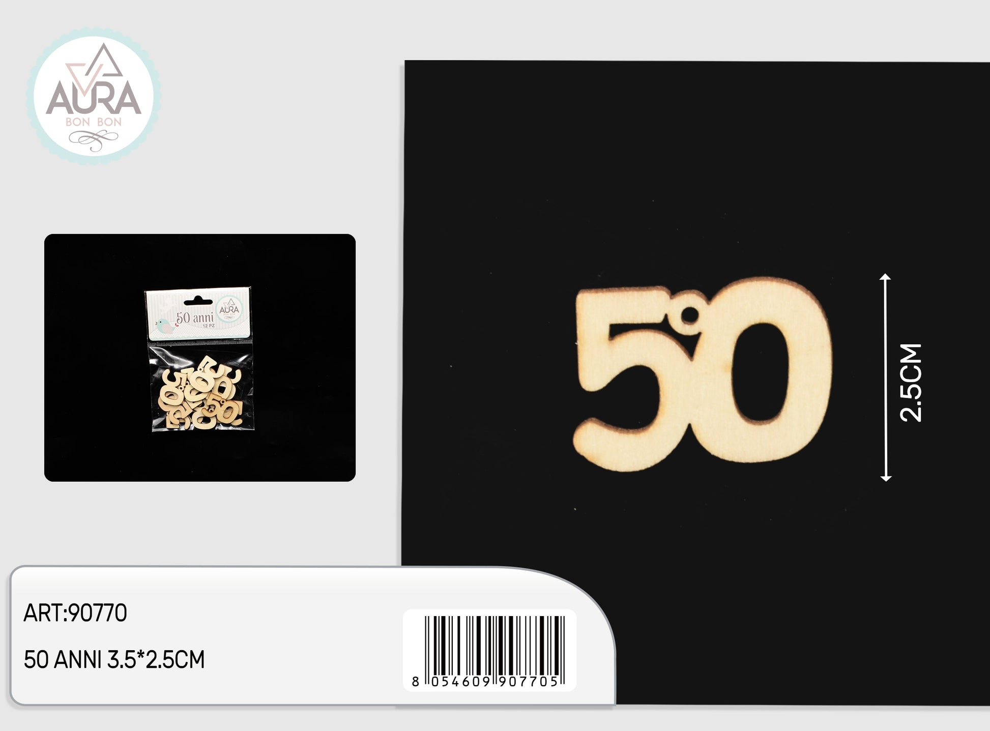 50 anni decorazione in legno naturale 12pz