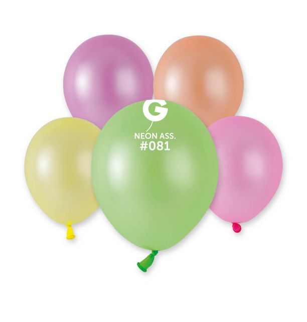 Confezione da 100 palloncini lattice neon da 5", colori assortiti intensi e luminosi, ideali per aggiungere un tocco di energia e divertimento a ogni evento.