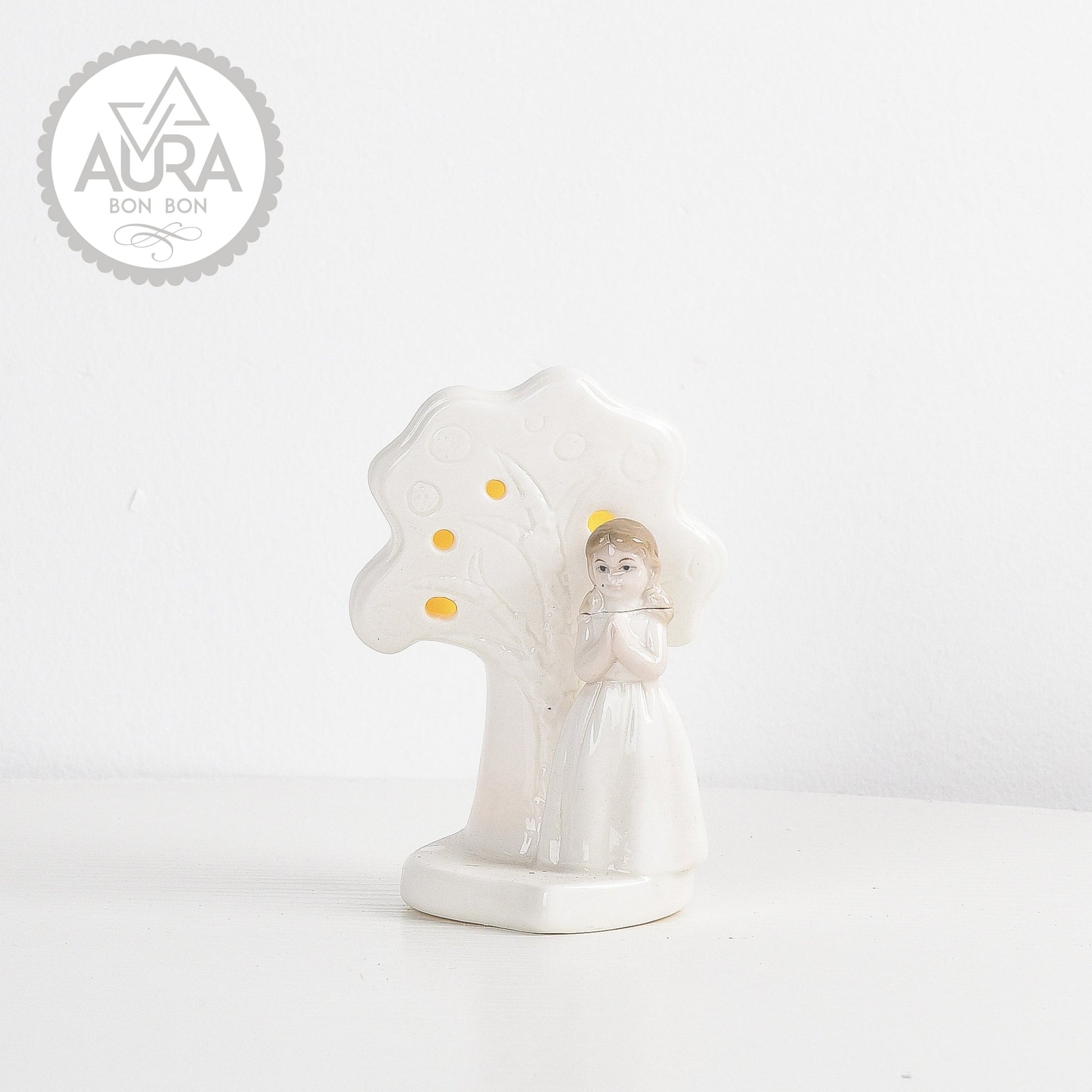 Albero della Vita in ceramica con dolce figurina di bambina, simbolo di fede, crescita e nuovi inizi. Una bomboniera elegante e significativa per la Prima Comunione, perfetta per lasciare un ricordo speciale di un giorno indimenticabile. Ideale anche come decorazione ricca di valore simbolico.