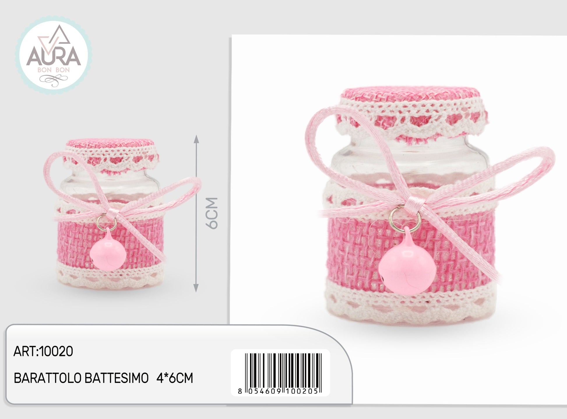 barattolo battesimo 4x6cm rosa