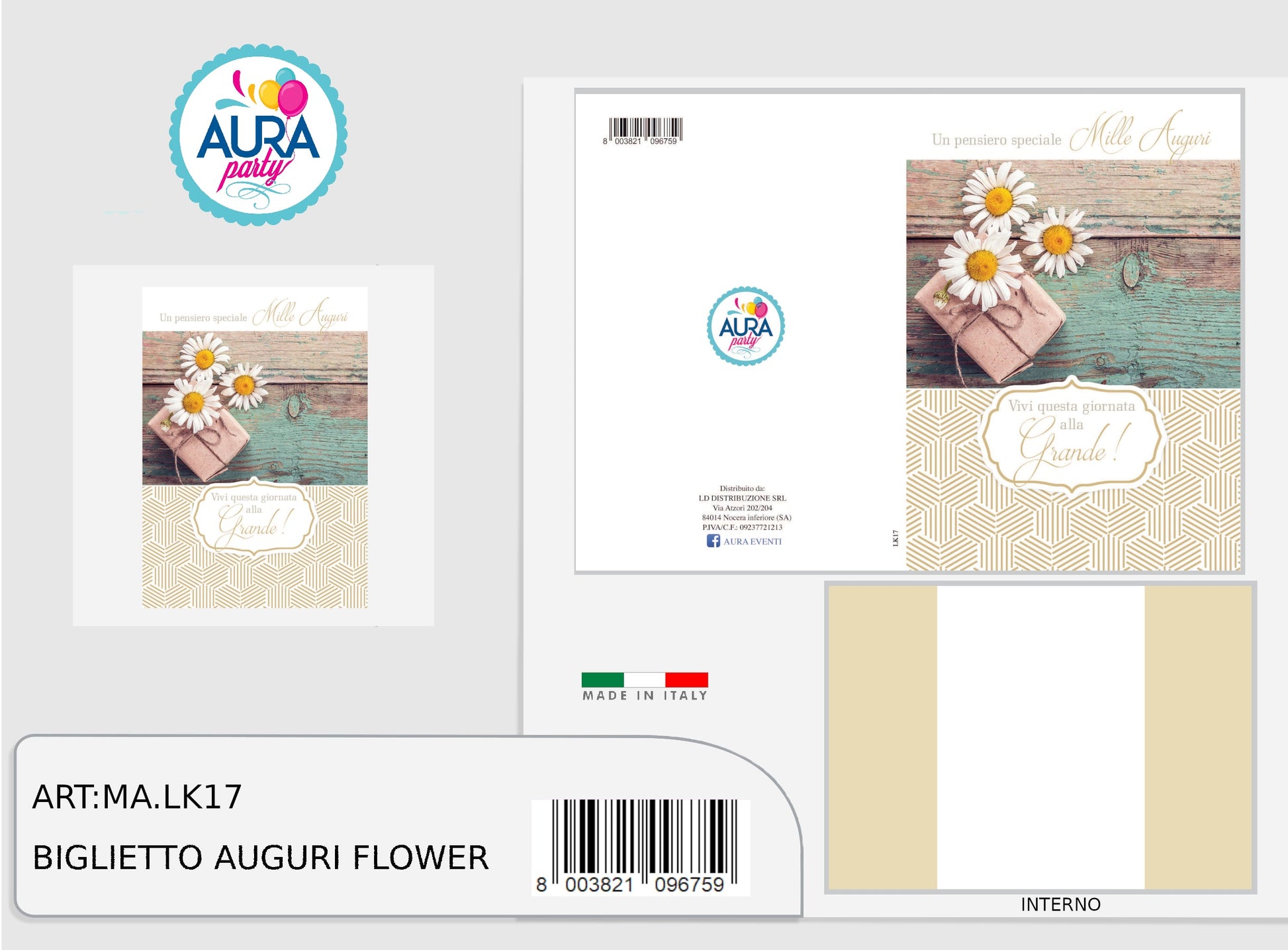 Un elegante biglietto di auguri impreziosito da dettagli in oro a rilievo