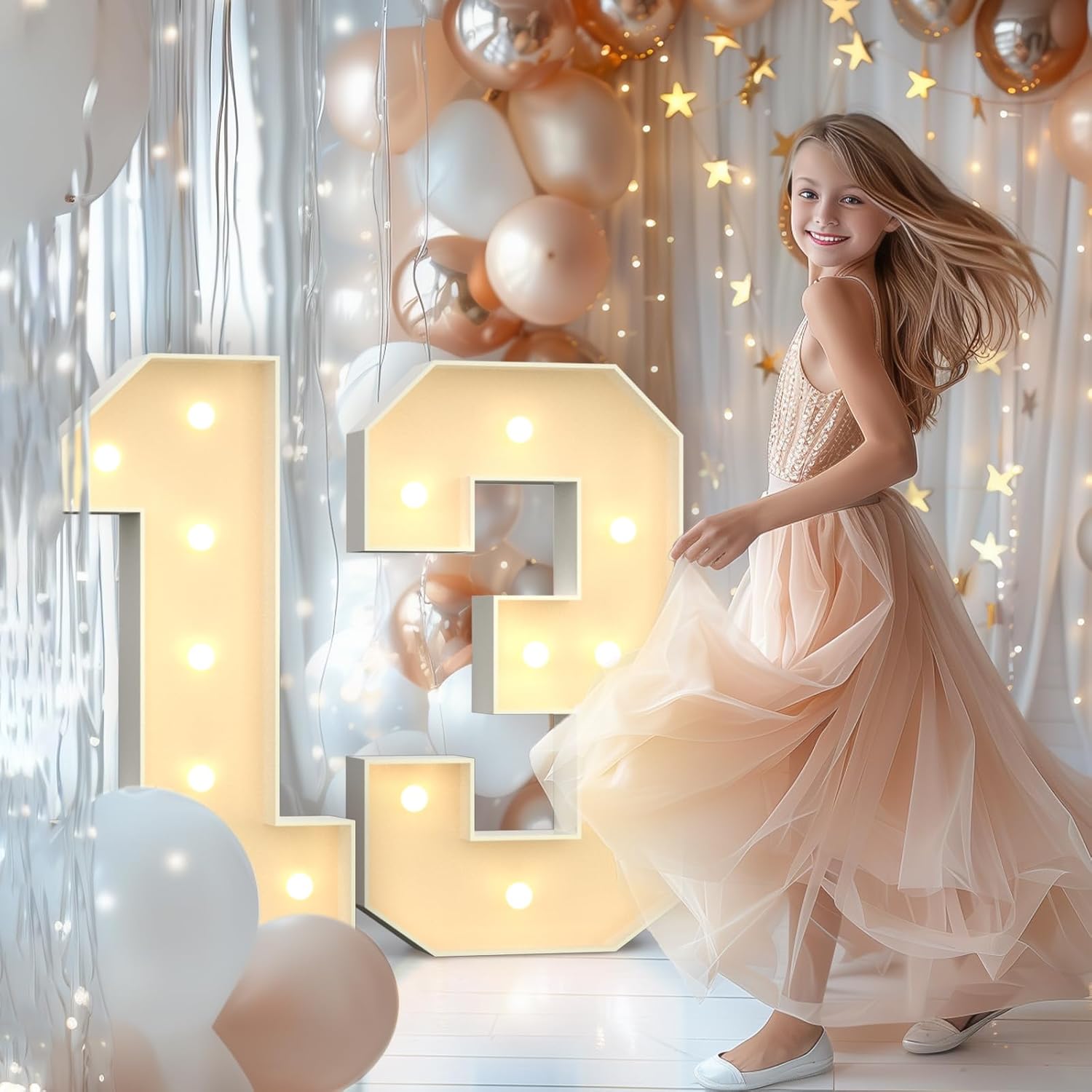 Numero 3 luminoso in cartone con luce calda, alto 1m. Montaggio semplice e veloce per decorare feste indimenticabili. Trasforma ogni celebrazione in un momento speciale e affascinante!