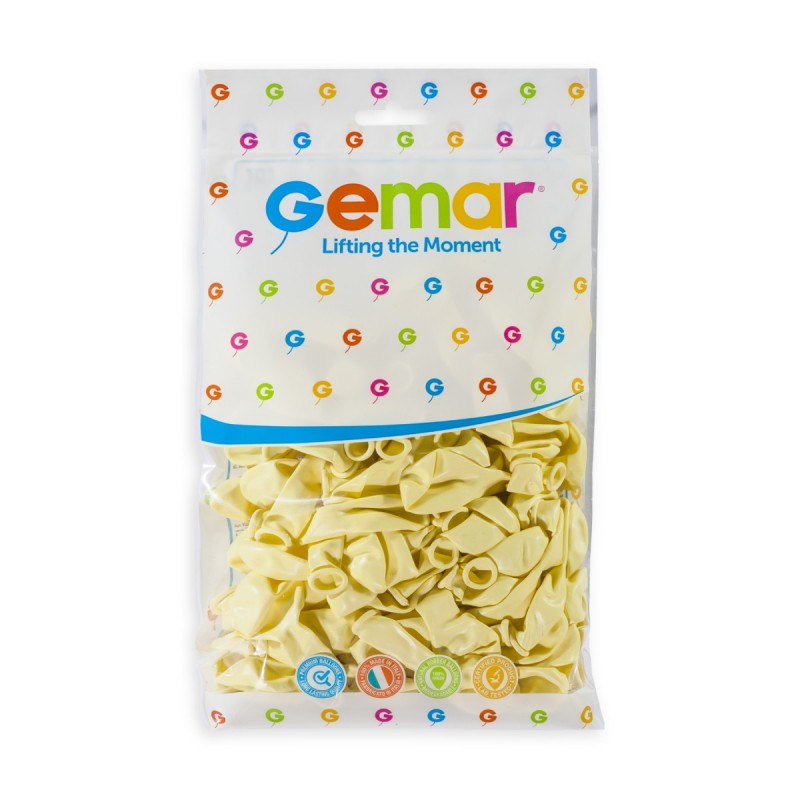 Confezione da 100 palloncini 5" in lattice pastello avorio, ideali per decorazioni raffinate e versatili in ogni festa o evento speciale.