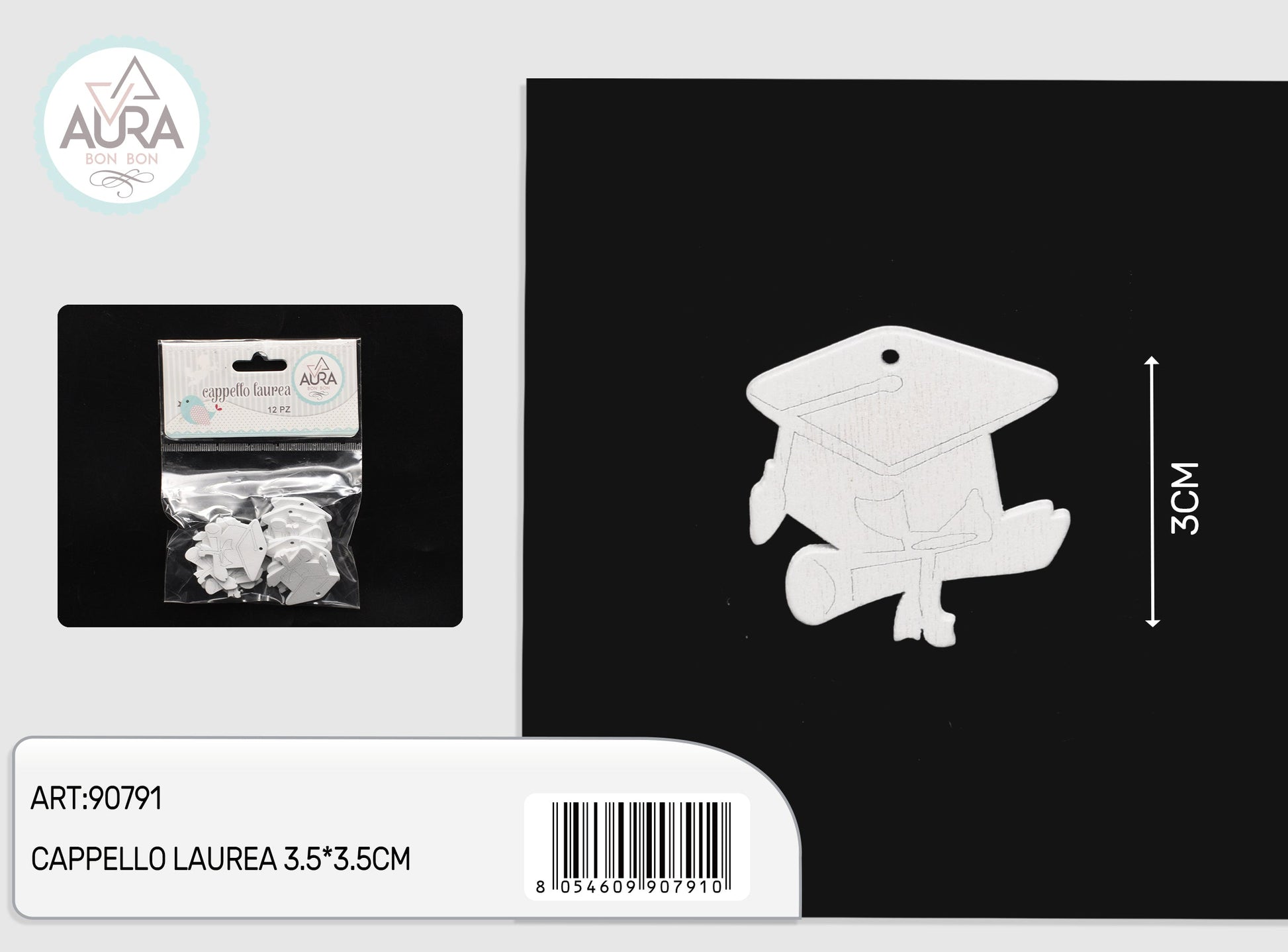 Tag bianco in legno cappello laurea 3,5x3,5cm 12pz