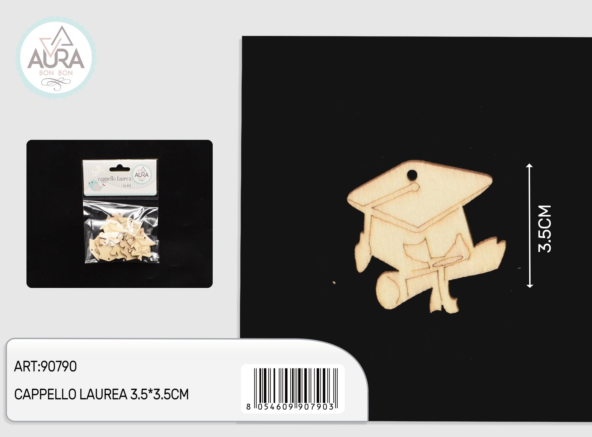 Tag bianco in legno naturale cappello laurea 3,5x3,5cm 12pz
