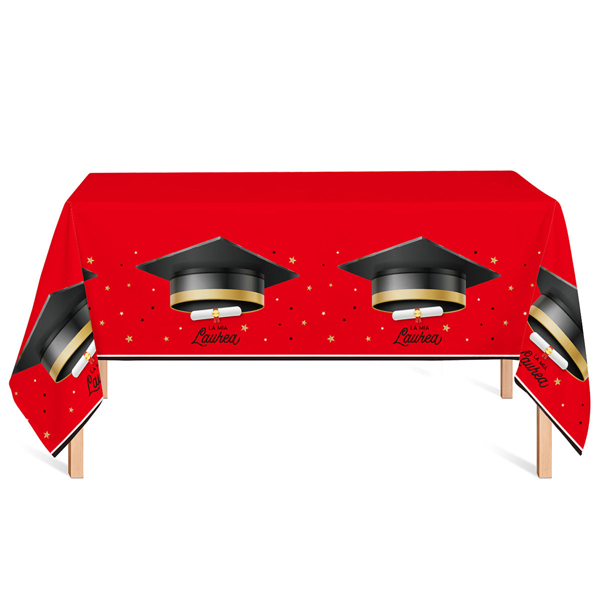 Tovaglia in carta rossa "La Mia Laurea", perfetta per celebrare questo giorno speciale. Elegante e pratica, aggiunge un tocco di colore e stile alla tavola, creando l’atmosfera ideale per una festa di laurea indimenticabile.