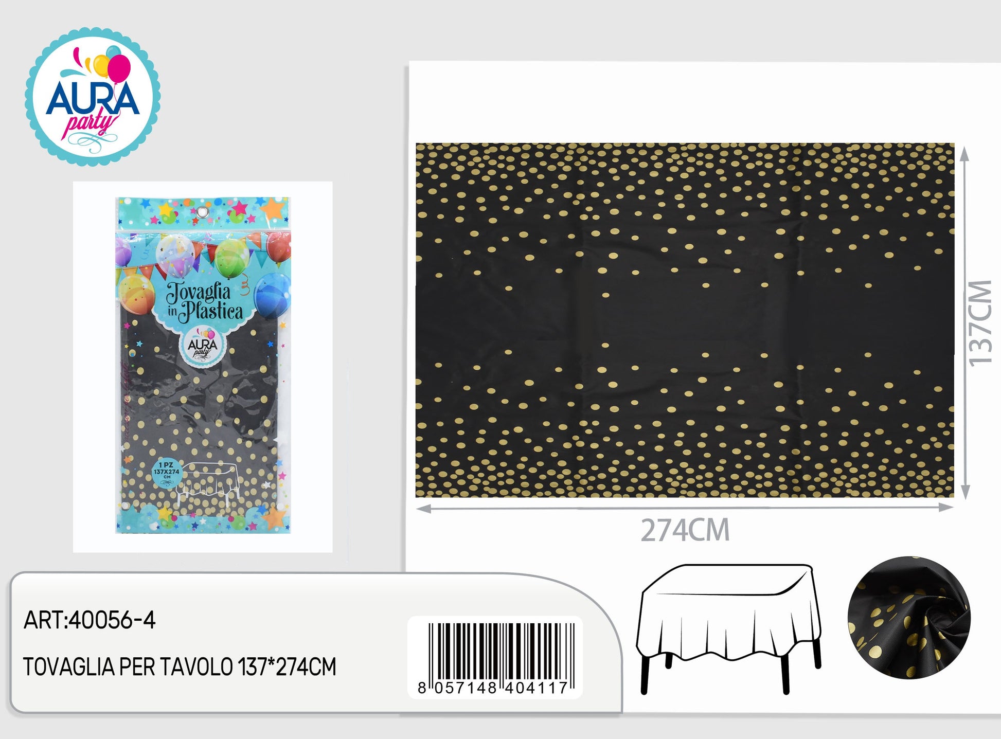 Tovaglia per tavolo 137x274cm nero e oro