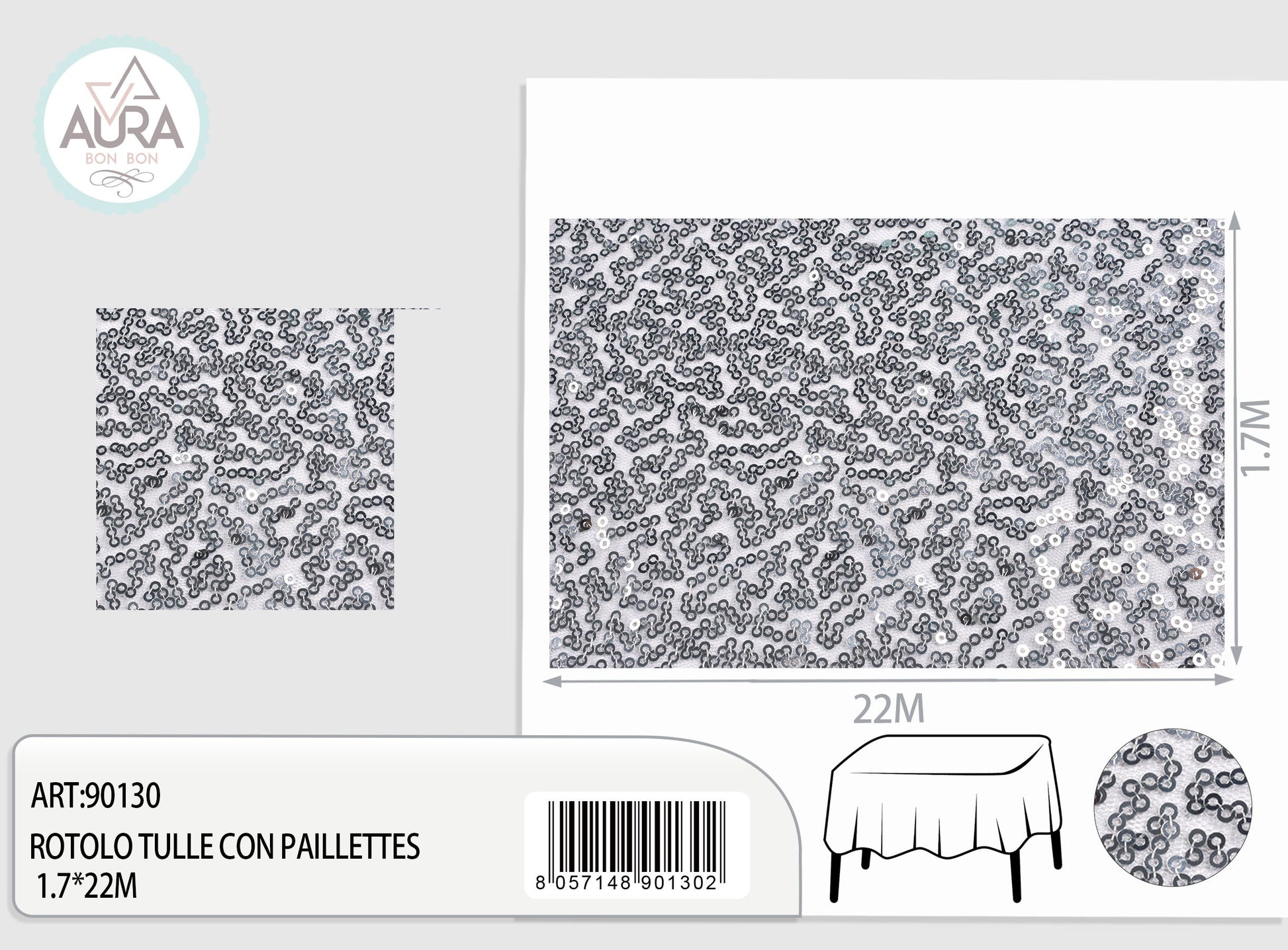 Tulle con paillettes 1,7m di larghezza grigio