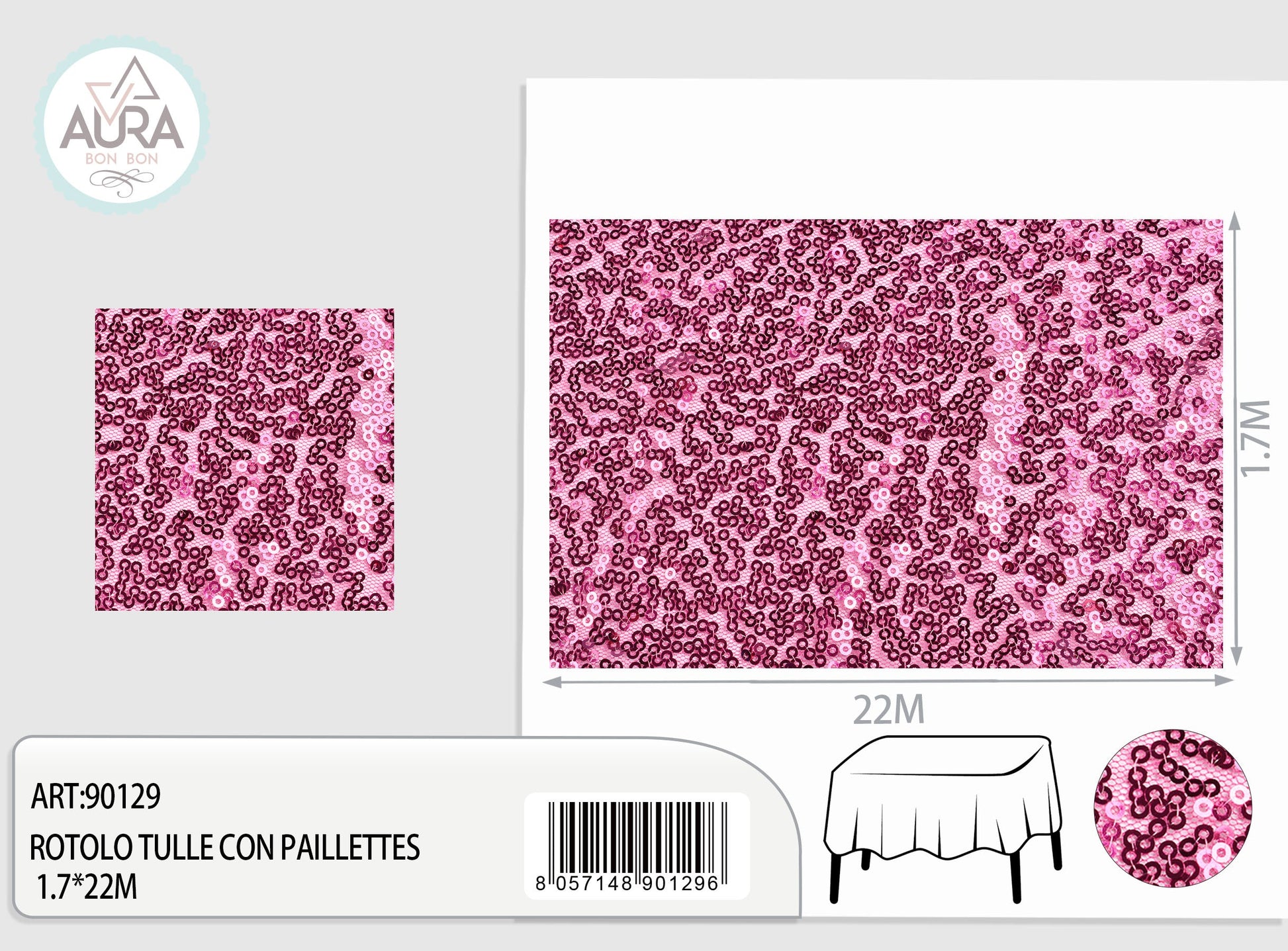 Tulle con paillettes 1,7m di larghezza magenta