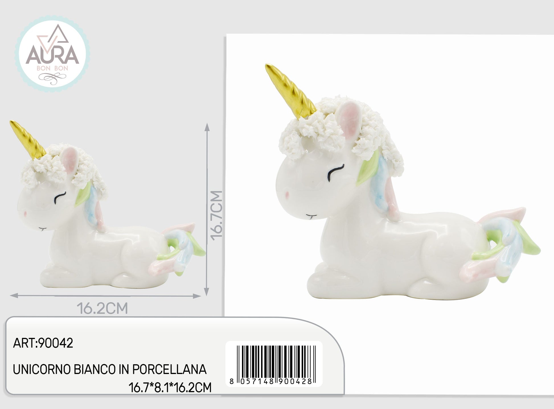 Unicorno bianco in porcellana 16,7x8,1x16,2cm