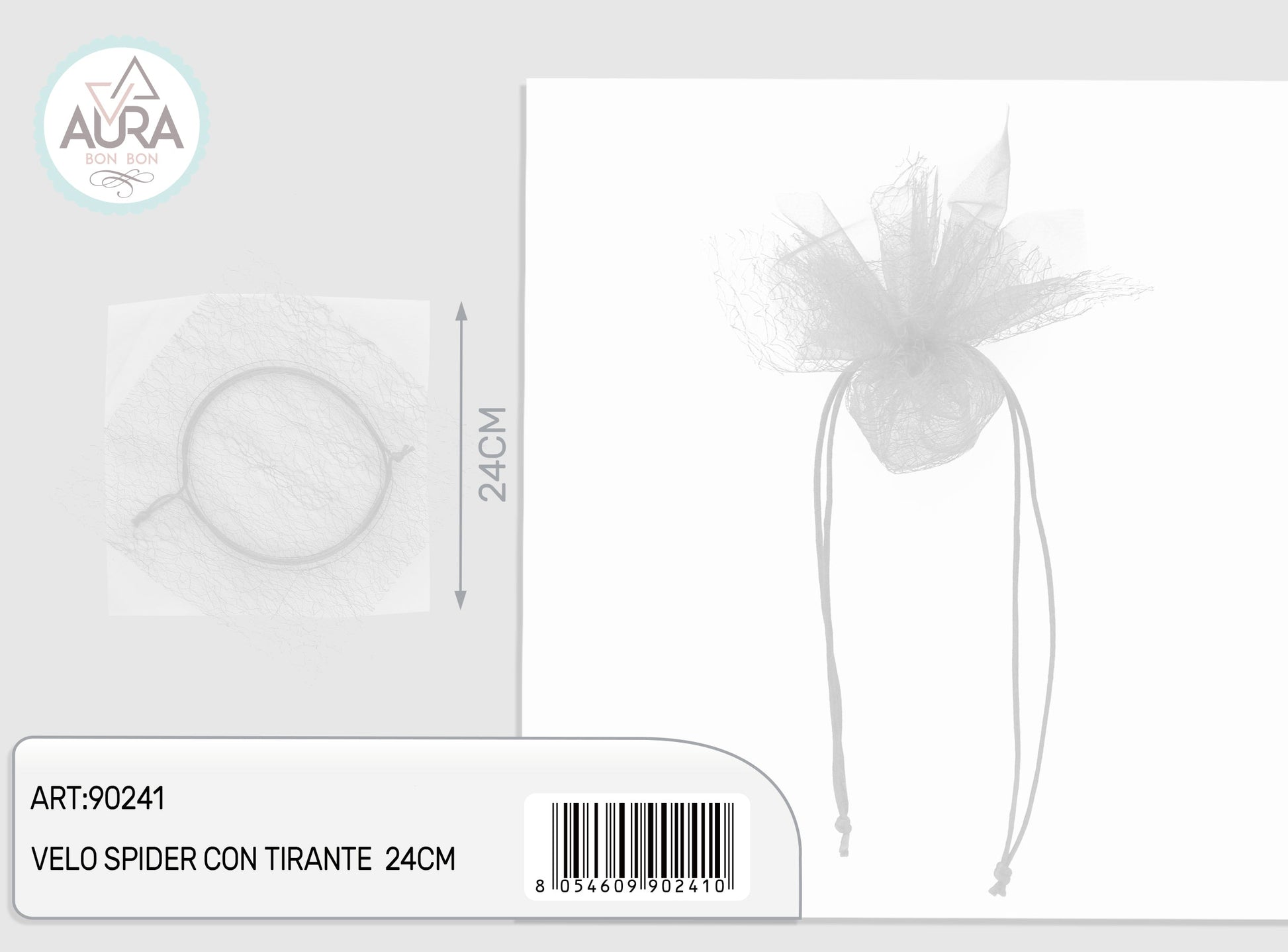 Il velo Spider bianco con tirante da 24 cm è la scelta elegante per confezionare confetti, aggiungendo un tocco raffinato che valorizza ogni occasione speciale.